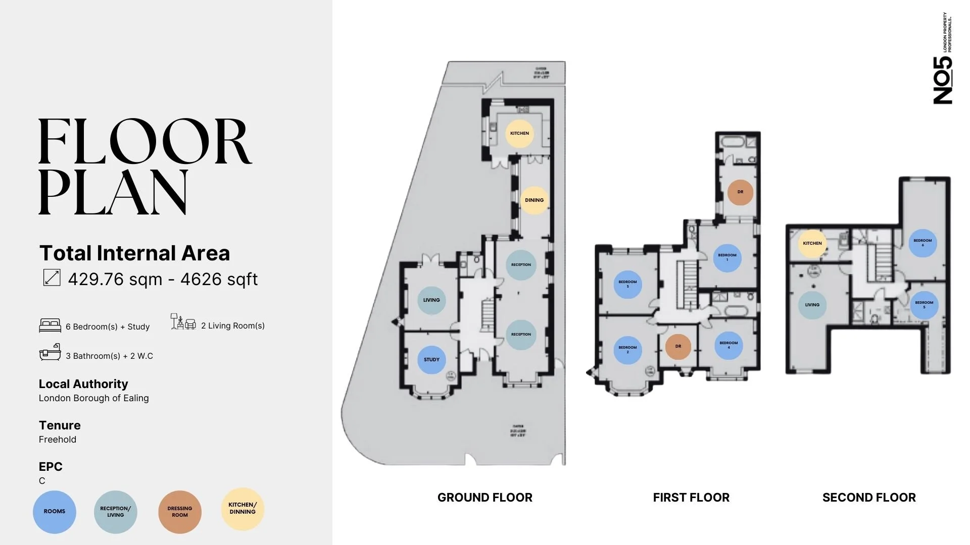 With 6 large bedrooms, 3 bathrooms + 2 toilets and 4 reception rooms spread across three floors, Twyford Crescent is the perfect family home.